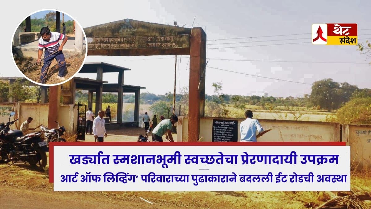 जामखेड: खर्ड्यात स्मशानभूमी स्वच्छतेचा प्रेरणादायी उपक्रम; ‘आर्ट ऑफ लिव्हिंग’ परिवाराच्या पुढाकाराने बदलली ईट रोडची अवस्था
